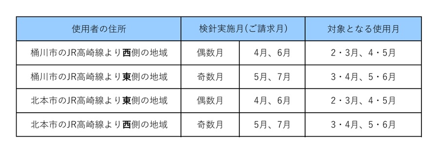 ※検針は2か月に1回実施しています。また、地域によって実施月が異なるため、下表で免除の対象となる使